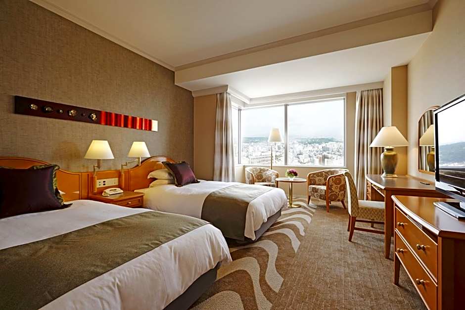 The spacious twin room features air conditioning, a safe deposit box, as well as a private bathroom boasting a bath and a shower. This twin room has an electric kettle, pajamas, a flat-screen TV and city views. The unit has 2 beds.